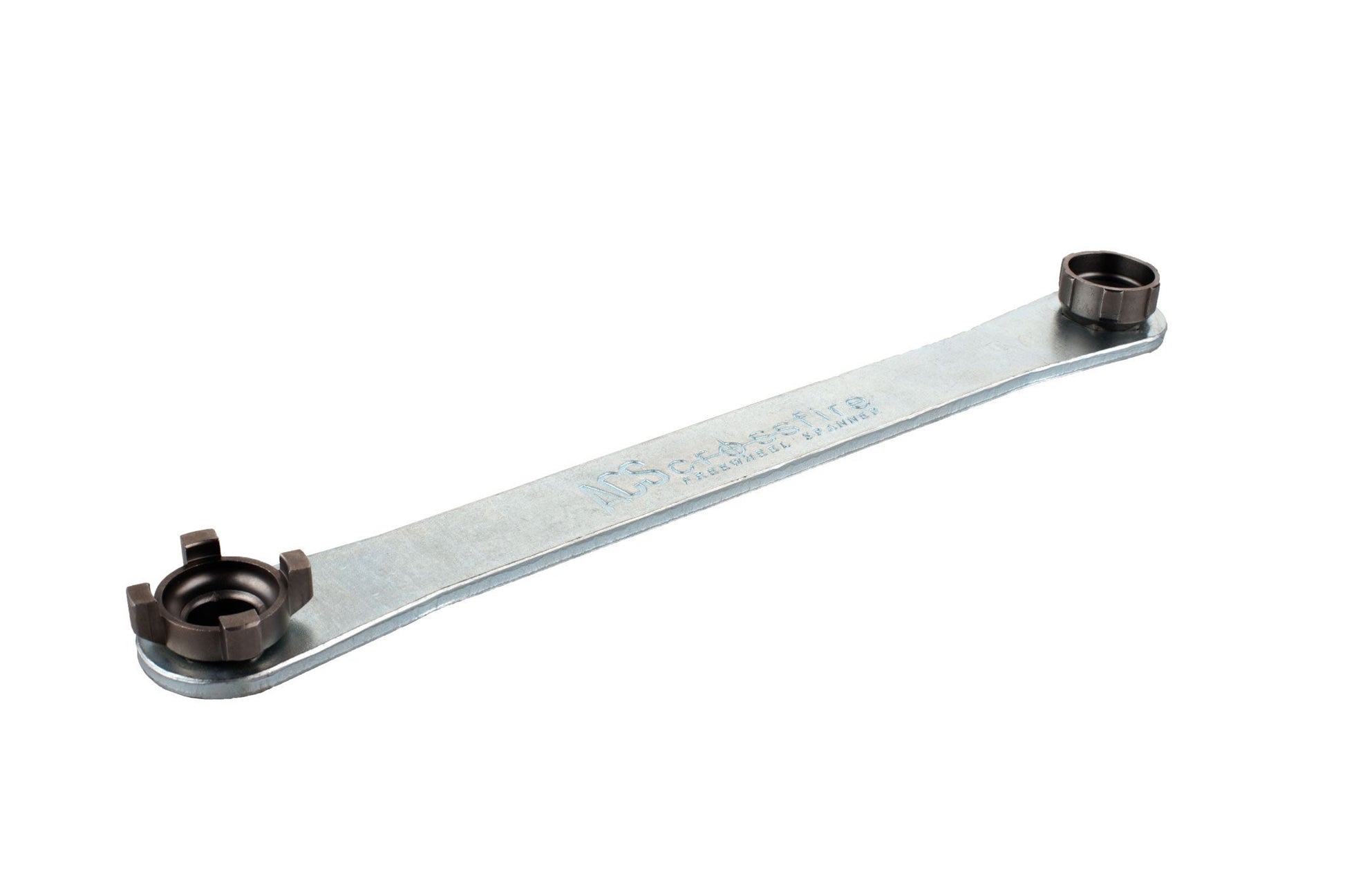 This meaty tool features the Crossfire 6-spline spanner and a universal 4-prong freewheel tool mounted on a thick steel lever. Long enough that you’re never short on torque and hefty enough to last longer than you do.